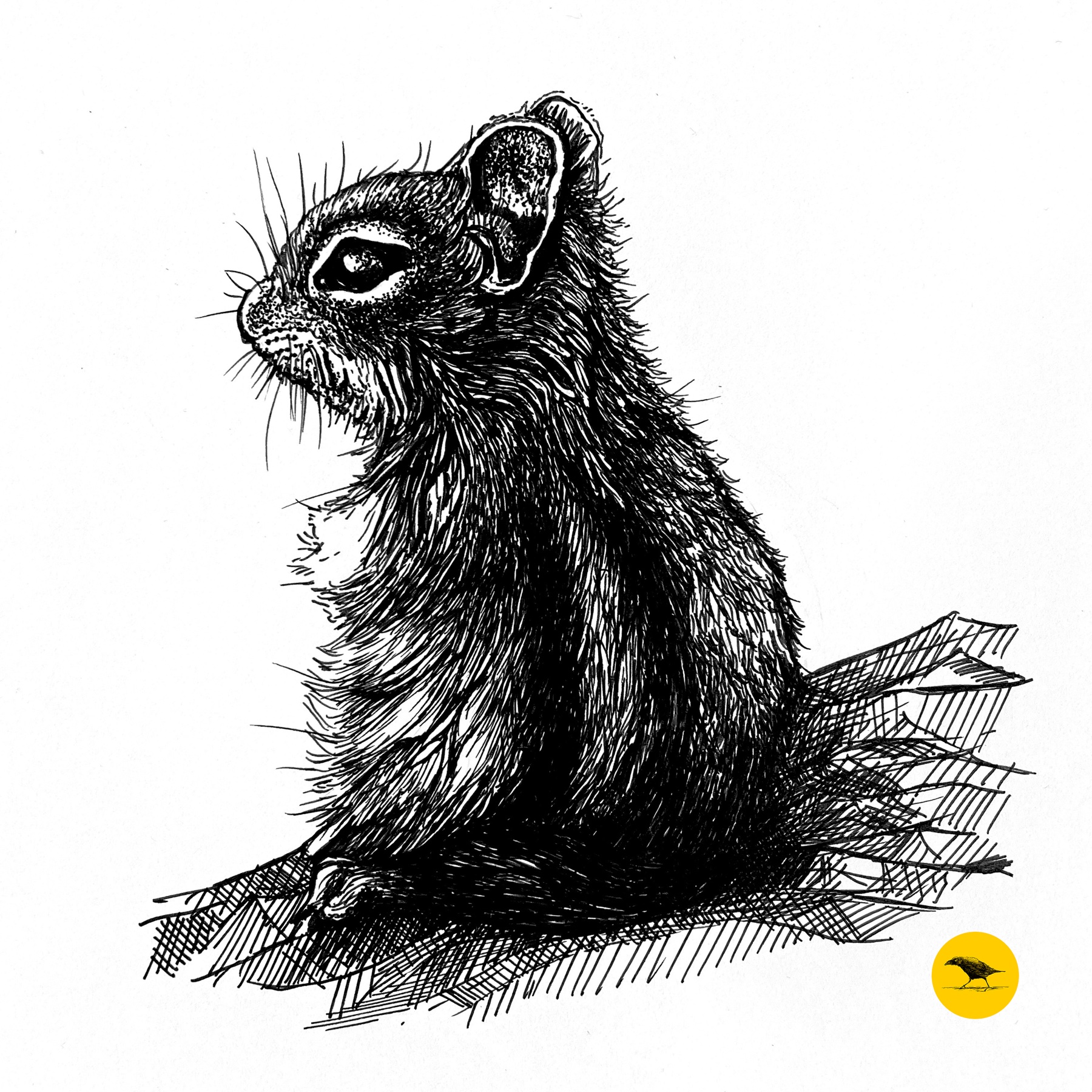 Schwarzweisse Tintezeichnung eines Hörnchens